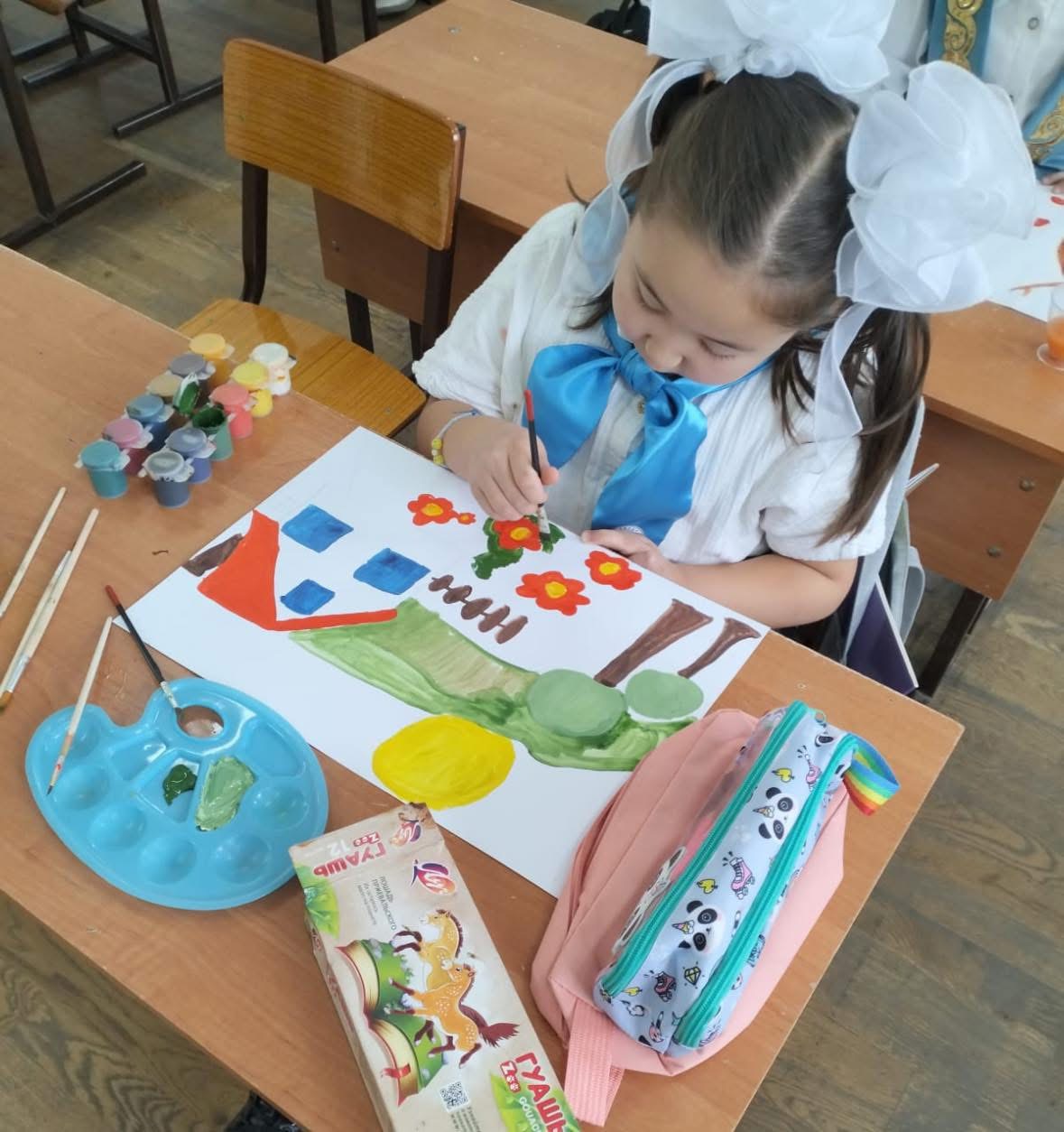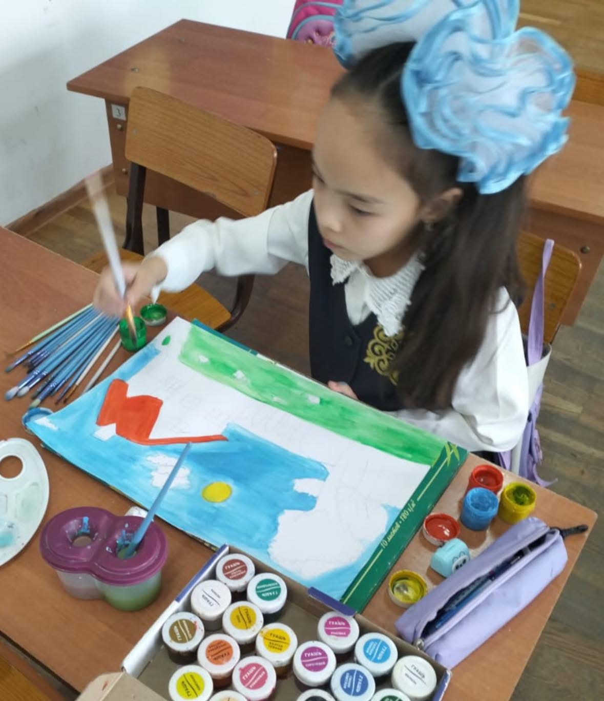 Оқушылар сурет салу барысында ойды дамытып қана қоймай, сұлулыққа үндейтін өнер түрімен сусындай білді.