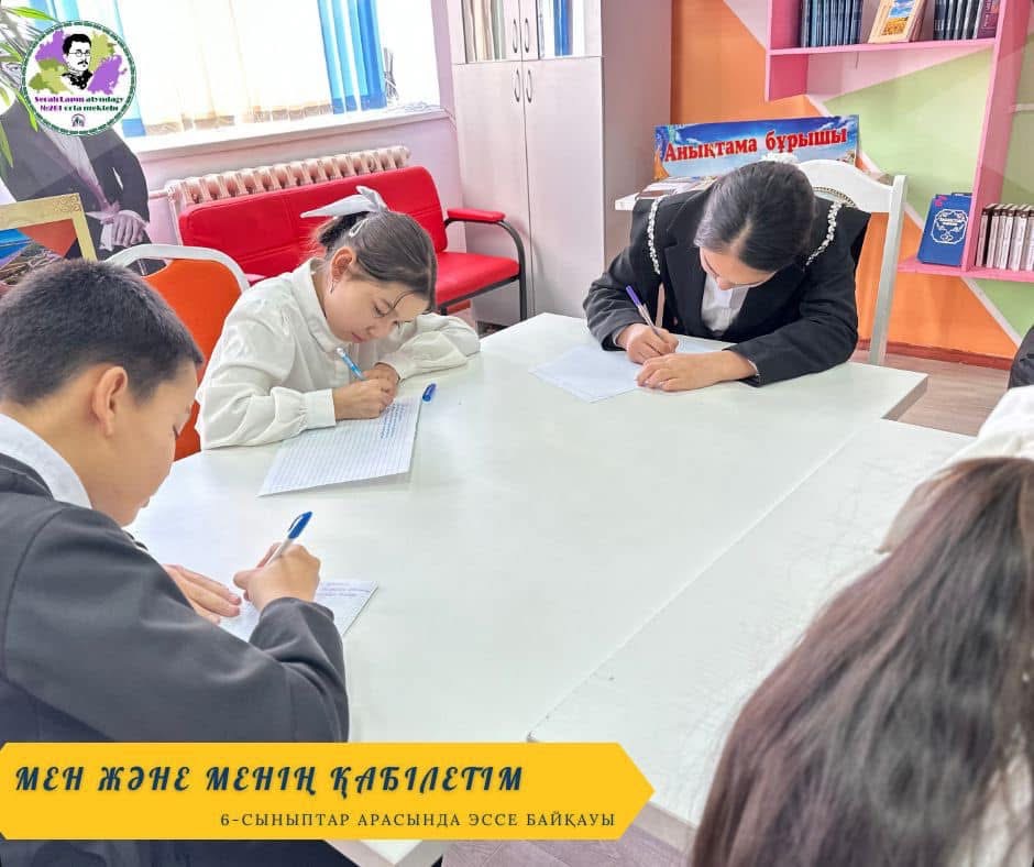 Мектебімізде кәсіби бағдар беру жұмыс жоспарына сәйкес «Мен және менің қабілетім» тақырыбында 6-сыныптар арасында эссе байқауы болып өтті.