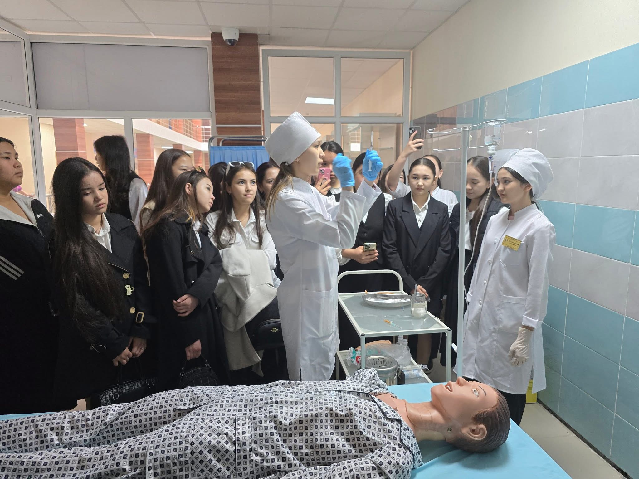 9-сынып оқушылары "Болашақ" жоғары медицина колледжінде өткен *Ашық есік күніне* қатысып, болашақ мамандықтарымен және колледждің заманауи оқу базасымен танысты.