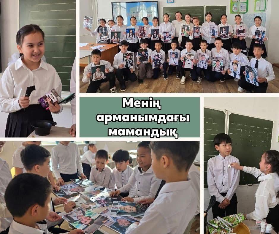 Оқушылар мамандықтардың маңыздылығын түсініп, түрлі ойындар мен сұрақ-жауап арқылы өз армандарымен бөлісті.
