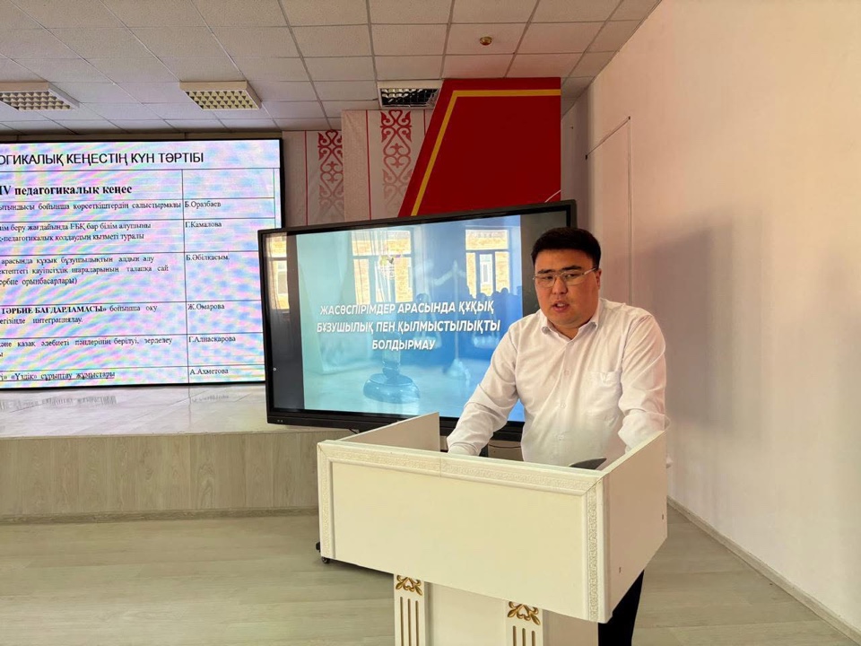 Бүгін мектебімізде жоспарға сәйкес №4 педагогикалық кеңес өтті. кеңесті мектеп директорының міндетін атқарушы ахметова ақтолқын бердәліқызы ашып, күн тәртібімен таныстырды.
